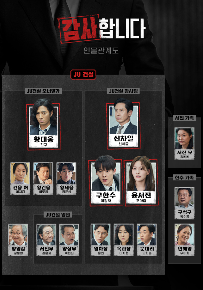 감사합니다 드라마가 첫 방송을 시작하는데요.화끈한 차일의 입사를 시작으로 비리 가득한 JU건설을 부정부패가 가득한 사람들을 찾아낼 것 같은데요.12부작으로 제작된 작품으로 스피드 있는