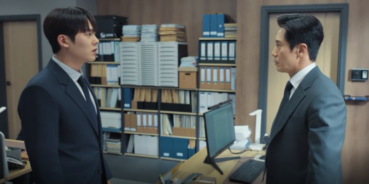 감사합니다 5회에서 감사의 무리한 감사로 양상무와 표본부장은 사표를 냈다고 이제 공사 지장이 가게 생겼다고 차일을 압박합니다. 대웅은 차일에게 어떻게 책임질 거냐고 말합니다.
