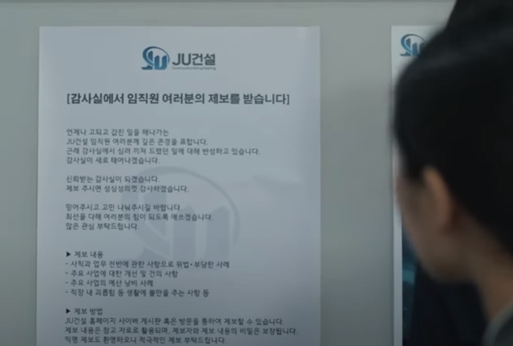 다급히 본사 구내식당을 비롯해 JU건설 현장 식당의 운영을 중지시킨 감사팀은 현장 식당 선정에 대한 비리를 조사하지만, 명백한 증거 수집에 난항을 겪게 되고, 결국 대웅의 반대에 부딪히는데 되네요. 차일은 사과문을 올리겠다고 대웅에게 말합니다. 모든 회사 게시판에 공지하겠다고 말합니다. 결론은 무리한 감사였다고 말합니다.