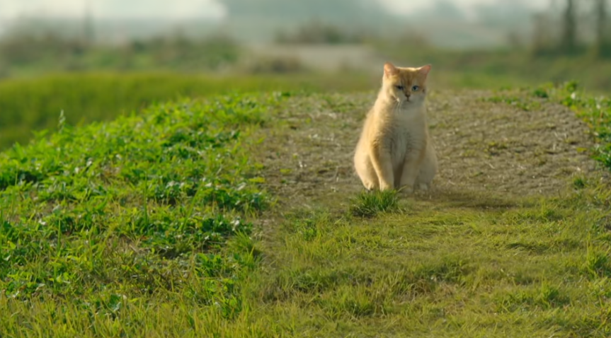 지친 하루 끝에 미진이가 걸어서 내려오던 언덕인데요 고양이가 미진을 쳐다봅니다.