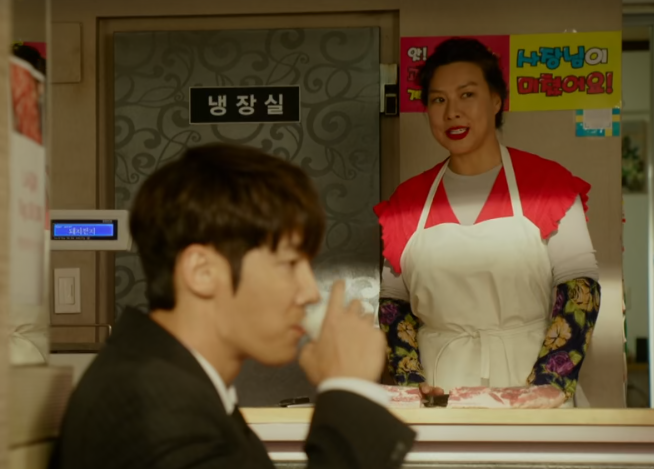 미진에게 이력서를 돌려주고 자신의 자료를 돌려받으려고 갔다가 미진의 어머니에게 공무원이라는 말에 특급 대우받았던 곳 정육점 이름도 너무 웃긴 것 같아요. 미친 정육점 그리고 고깃집 멘트고 웃긴 것 같습니다.