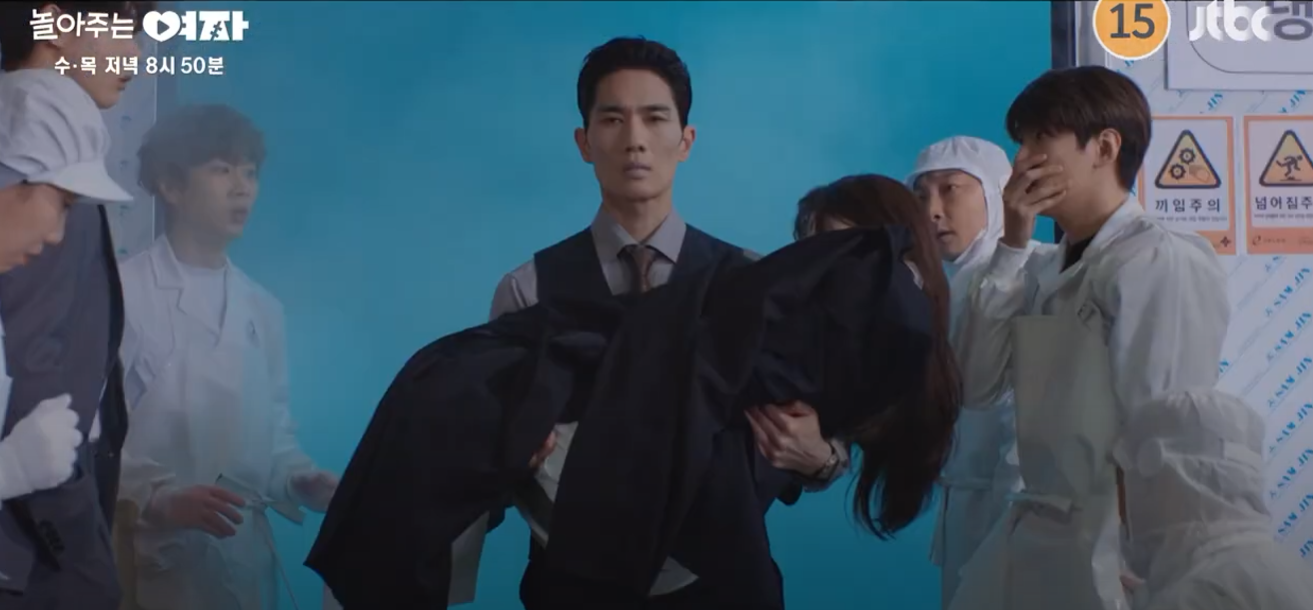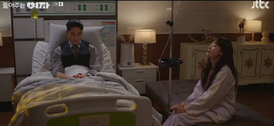 은하는 냉동창고에 의식을 잃게 되고 지환은 은하를 앉고 나오게 됩니다. 은하는 병원에 입원하게 됩니다. 지환은 깨어난 은하에게 은하 씨 저 누군지 모르겠냐고 물어봅니다.