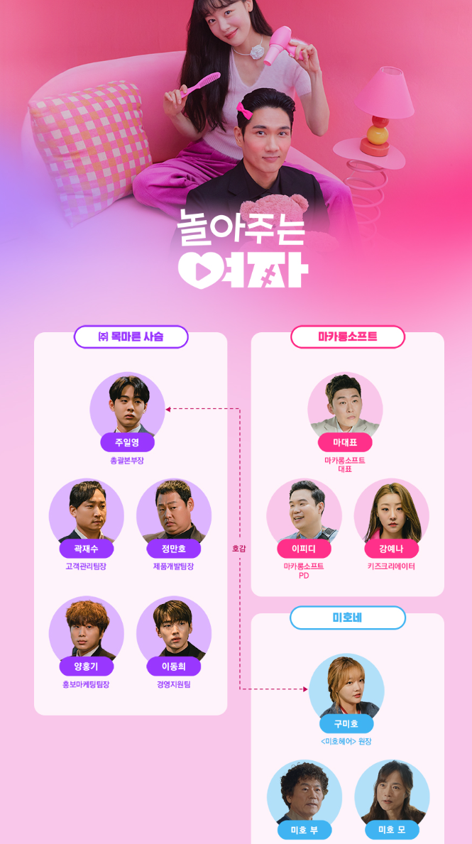 놀아주는 여자 인물관계도는 다음과 같습니다.