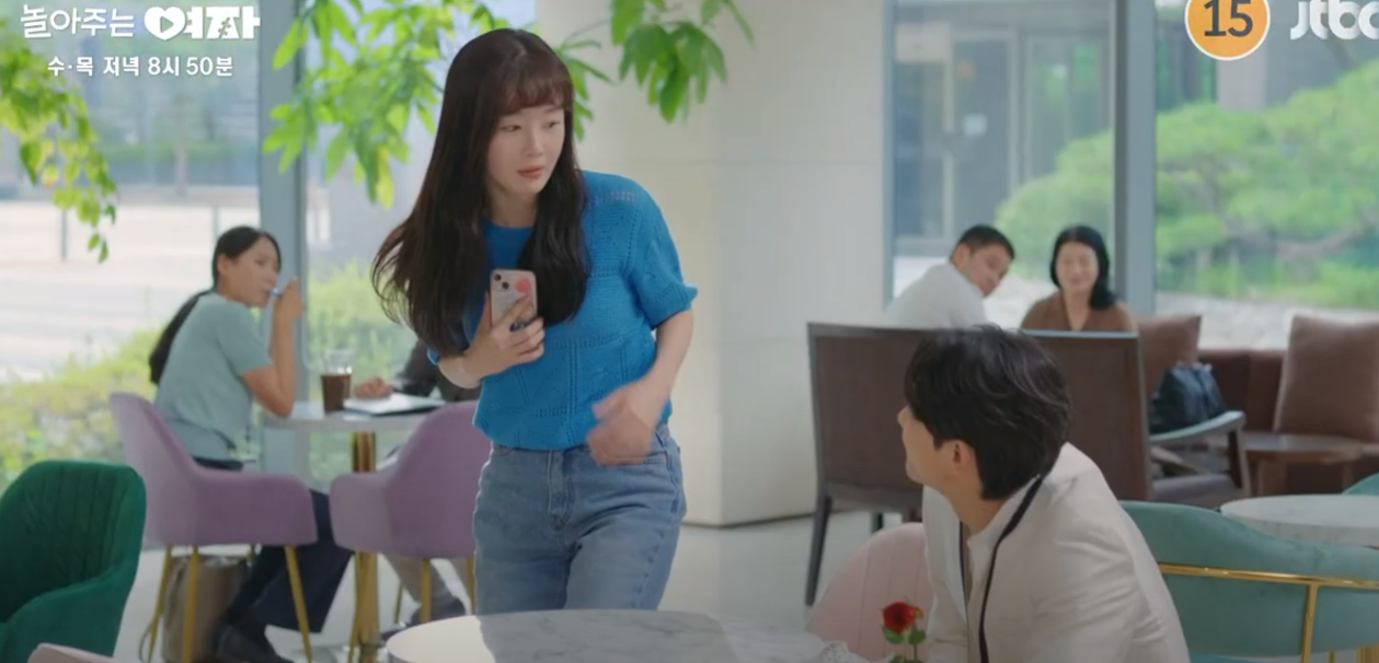 일영은 회사 1층에서 소개팅한다고 말해 줍니다. 느끼한 농담을 지환은 지켜보게 됩니다.