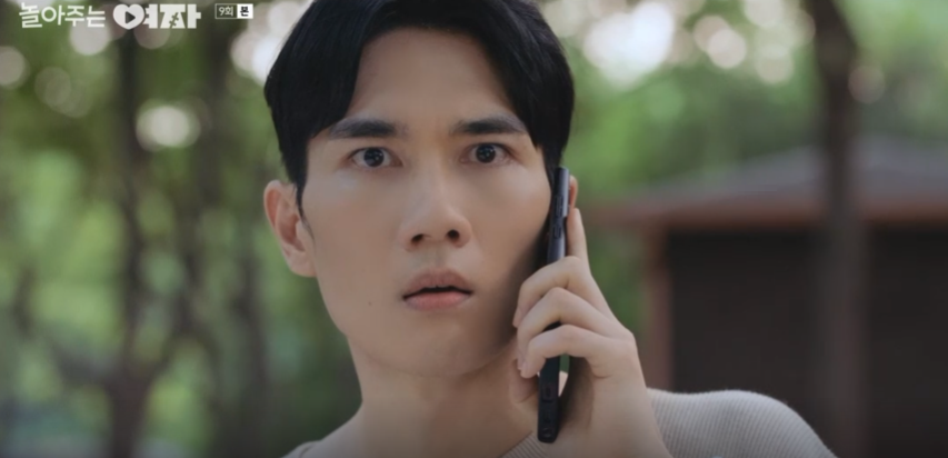 놀아주는 여자 9회 엔딩에서 현우와 공원에서 술 한잔을 하고 지환은 은하를 다른 집에 보낼 수 없다고 생각하고 계속 전화를 합니다. 은하가 지환의 전화를 받으려고 한순간 현우는 은하에게 좋아한다고 고백하고 지환은 그 모습을 보게 됩니다.