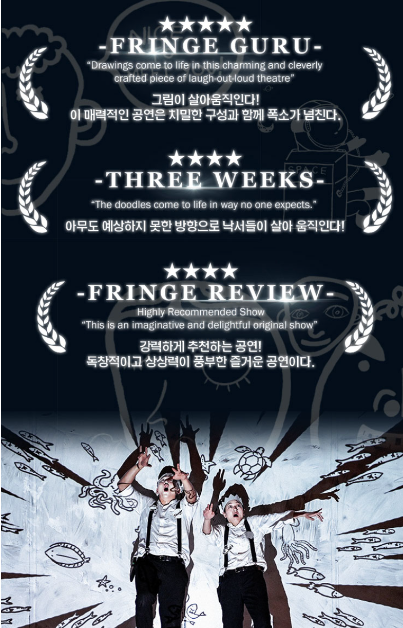드로잉과 비주얼 아트의 만남으로 낙서들이 살아 움직이는 마법과 관객을 무한한 상상력을 더하는 라이브 악기연주의 향연이며 온 가족이 즐길 수 있는 상상과 추억 속으로의 여행을 간다고 합니다.