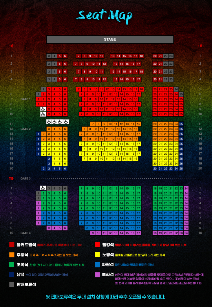뮤지컬 이블데드 공연은 객석마다 의미가 있으니 잘 확인하시고 예매하시면 좋을 것 같습니다.