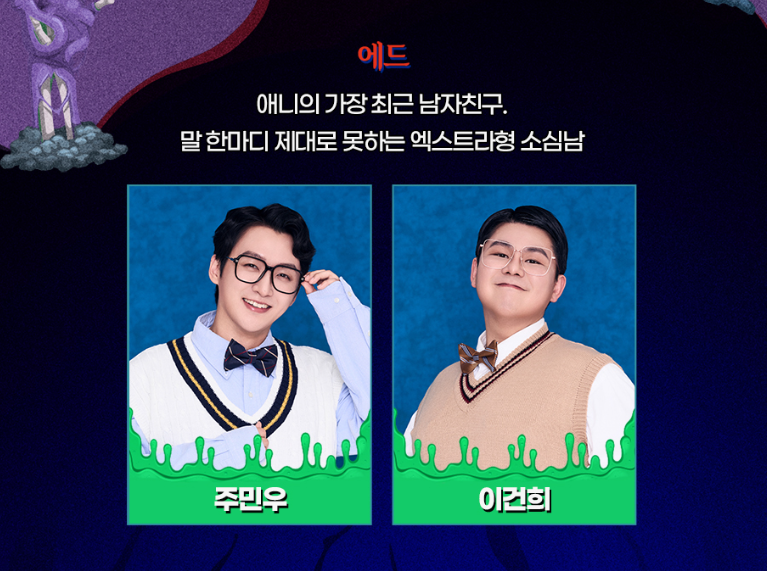 애드는 애니의 가장 최근 남자친구 말 한마디 제대로 못하는 엑스트라형 소심남이며 출연지은 주민우, 이건희라고 합니다.