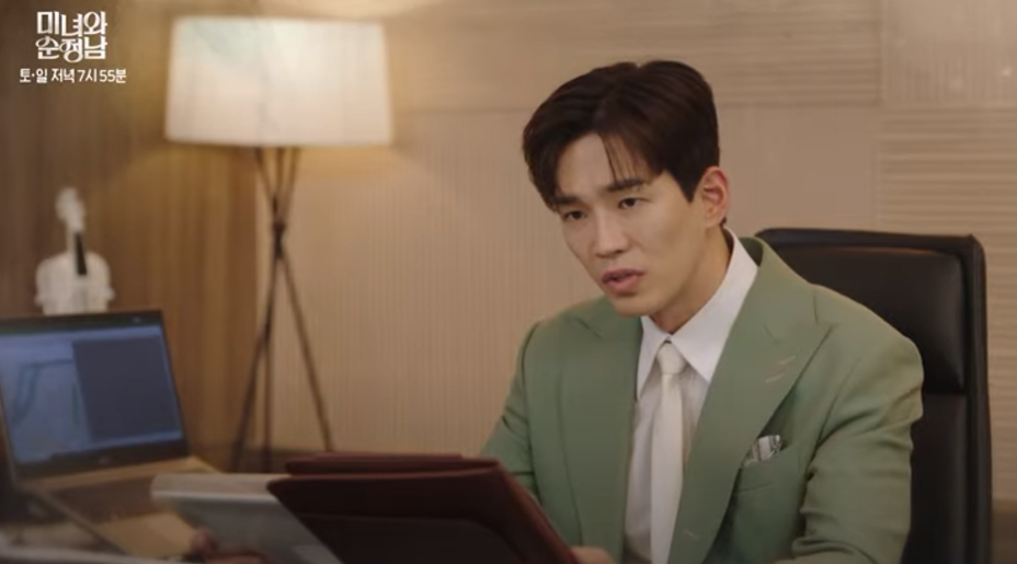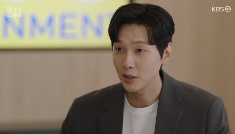 미녀와 순정남 28회에서 리딩현장에서 연기를 너무 못한 지영에게 격려를 하고 졸지 말라고 말합니다.