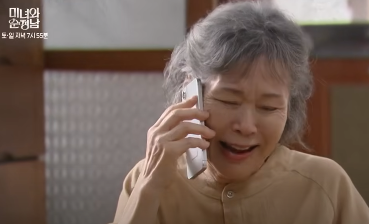 애교는 수연의 이혼은 막아야 된다고 진단에게 말합니다. 미녀와 순정남 32회 엔딩에서 애교는 선영에게 찾아와서 수연이 이혼하려고 한다고 눈치 없이 말하고 필승할머니는 계속 수연의 이혼에 대해서 계속 이야기합니다.