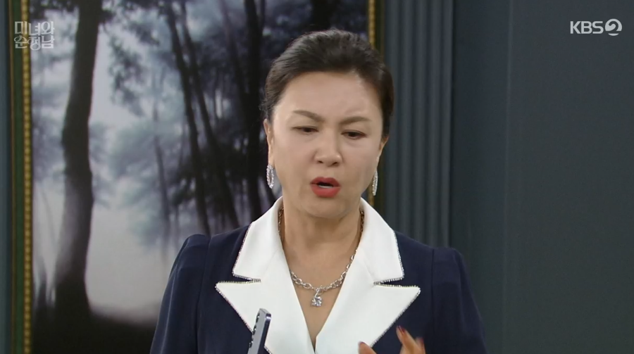 지영의 엄마 미자를 불러 내가 5억을 주면 내가 시키는 데로 다할 거냐고 말합니다.