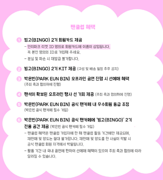 박은빈 팬클럽 빙고 2기 기입과 모집기간은 다음과 같습니다.