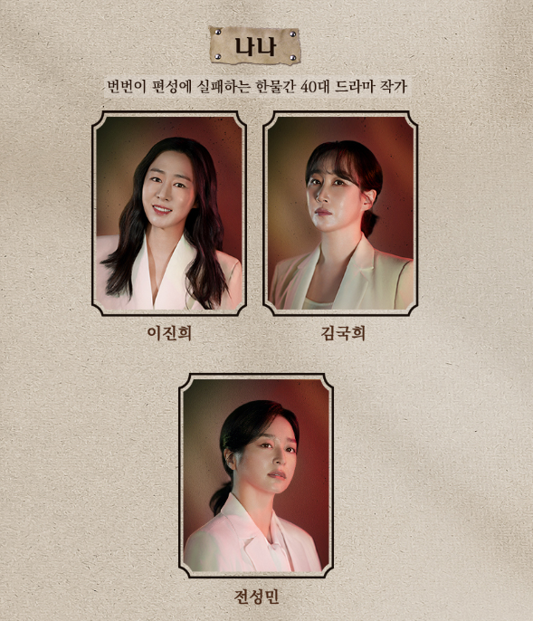나나는 번번이 편성에 실패하는 한물간 40대 드라만 작가 역할입니다.