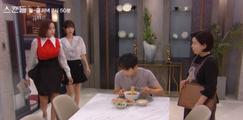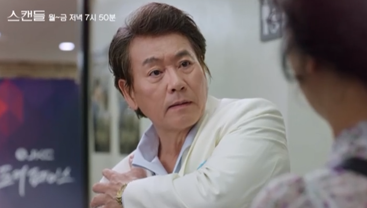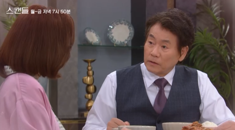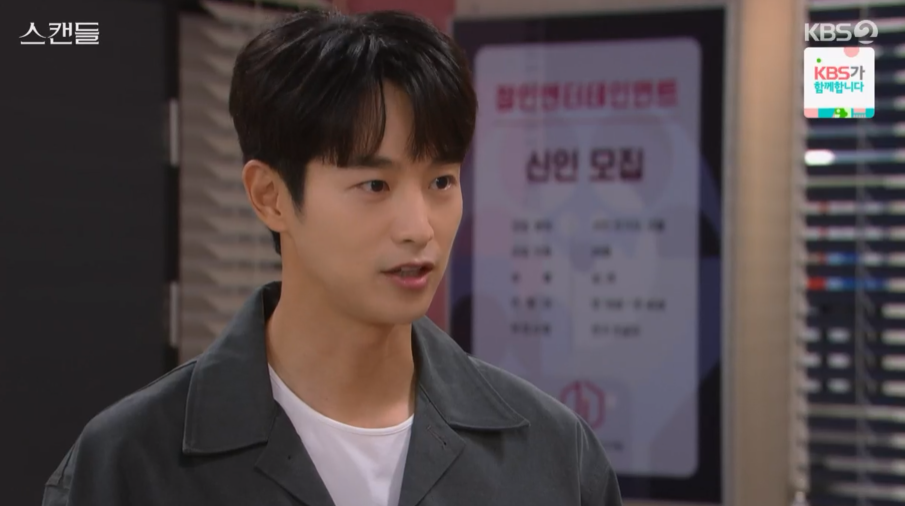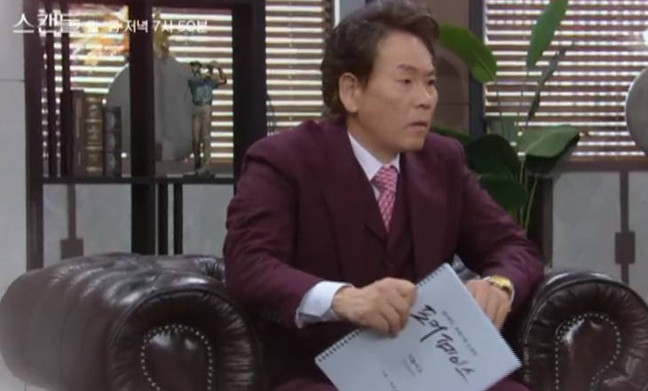 스캔들 16회 엔딩에서 제작비가 부족해진 정인은 우진을 데리고 음식점으로 가서 스폰서를 만나게 합니다.