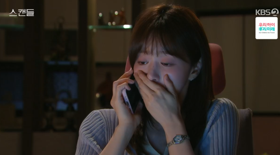 스캔들 14회 엔딩에서 정인은 아는 사람이 없는 텐데 생각하고 불안해합니다.