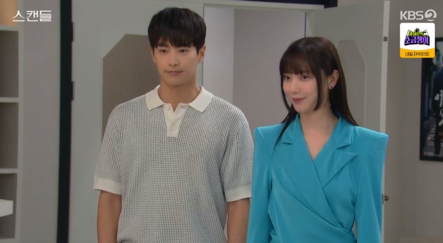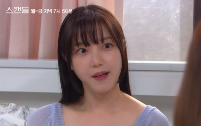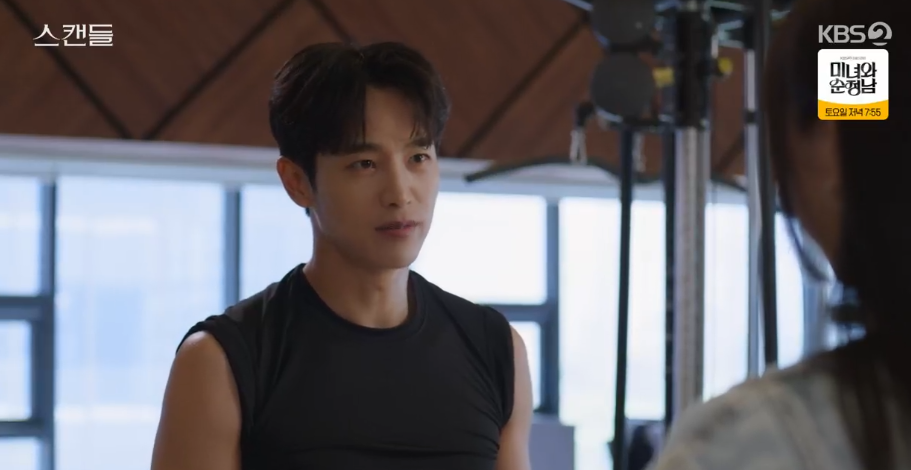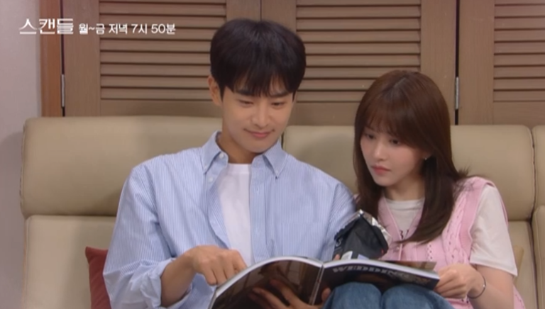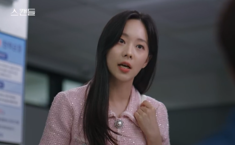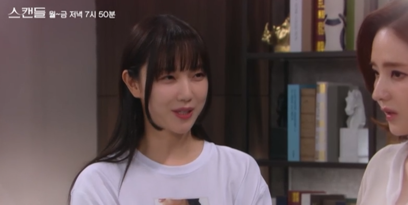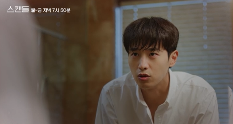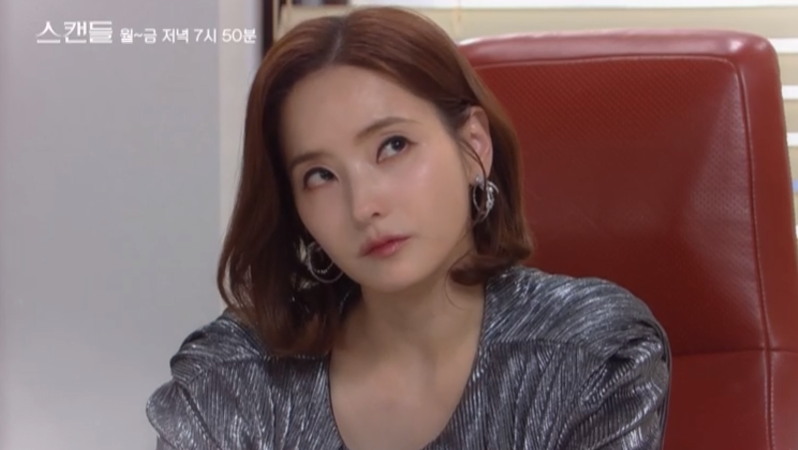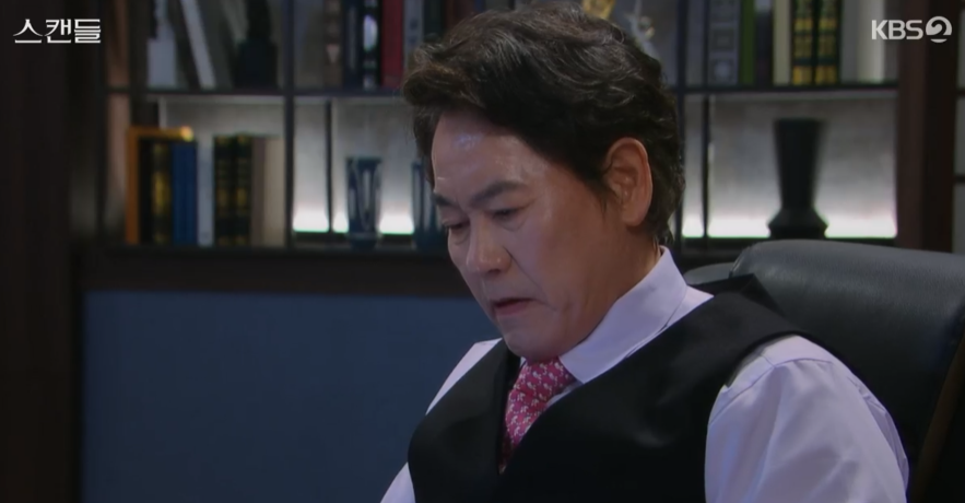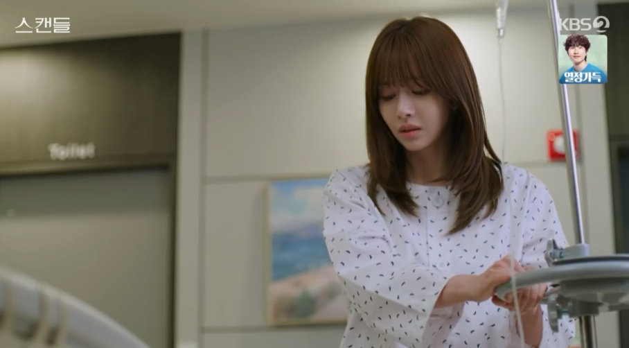 스캔들 8회는 아프다는 핑계로 회사에 출근하지 않는 정인의 모습에 주련과 태창은 의아해합니다.