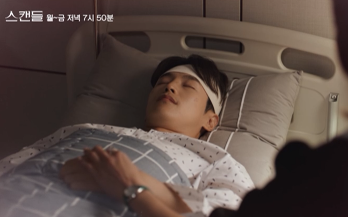 스캔들 7회 엔딩에서는 준호는 교통사고를 당하고 정인에 집에 누워 있게 되고 결혼식에 나타나지 않습니다.