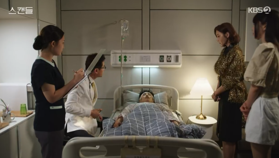 스캔들 8회에서 정인은 진호의 간호를 위해 의사를 집으로 부릅니다.