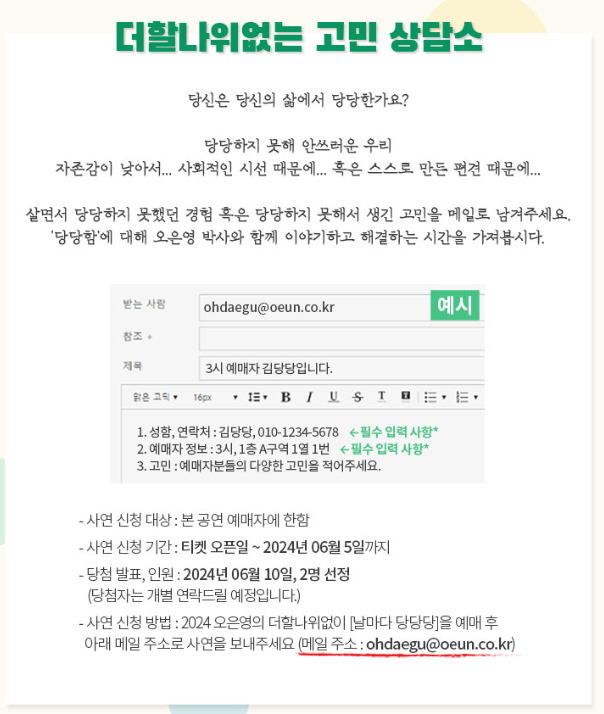 당당함에 대한 오은영박사와 함께 이야기학 해결하는 시간을 가져봅니다. 공연 예매자에 한해서 진행된다고 합니다.