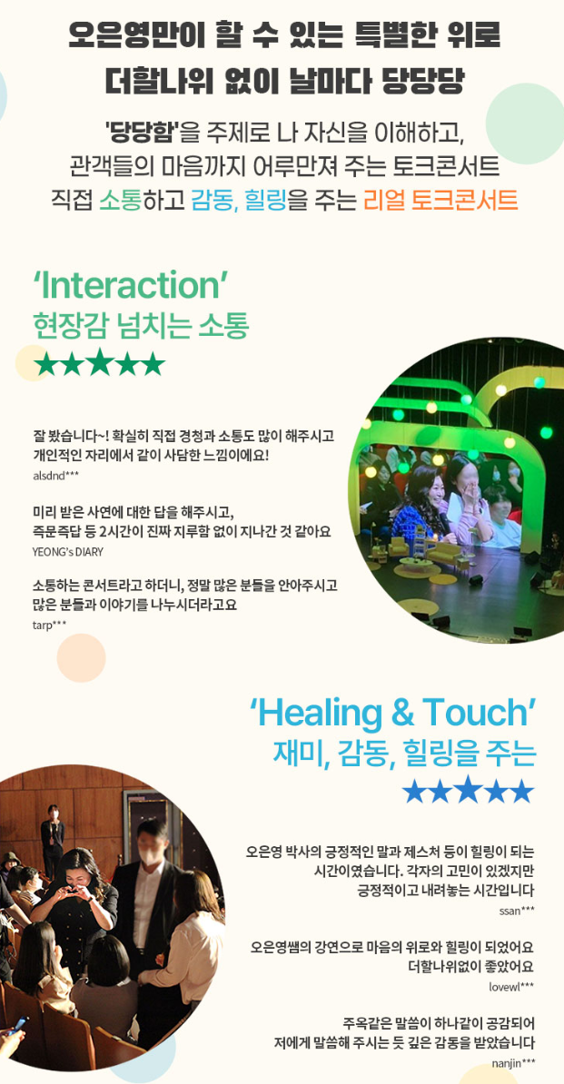 아무래도 낮은 자존감과 사회적 시선에 지친 분들이 있다면 토크 콘서트에 가보시는 것도 좋을 것 같아요