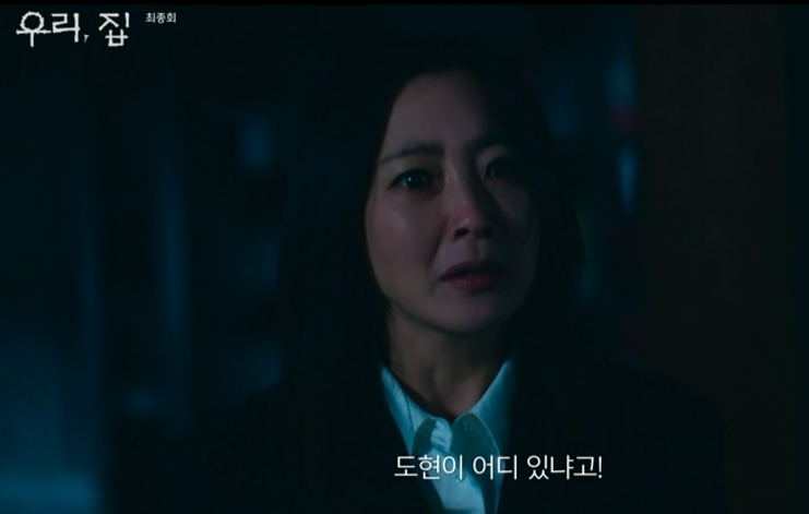 우리, 집 11회에서 세나는 정원에게 소포를 보내고 그 속에 협박편지와 읽을 연설문이 있었고 공개적으로 읽으라고 말합니다. 세나의 말대로 공개적으로 읽지만 정원의 생각은 어떤 일이 있어도 가족을 지키겠다고 말하고 세나를 공개 수배를 합니다. 우리, 집 11회 엔딩에서 분노한 세나는 아들 도현을 납치하고 정원에게 협박 전화를 합니다.