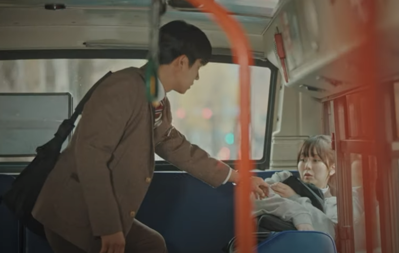 우연일까 1회에서 홍주는 버스에서 자고 있었고 홍주를 후영이 깨우고 같이 등교를 하게 됩니다.