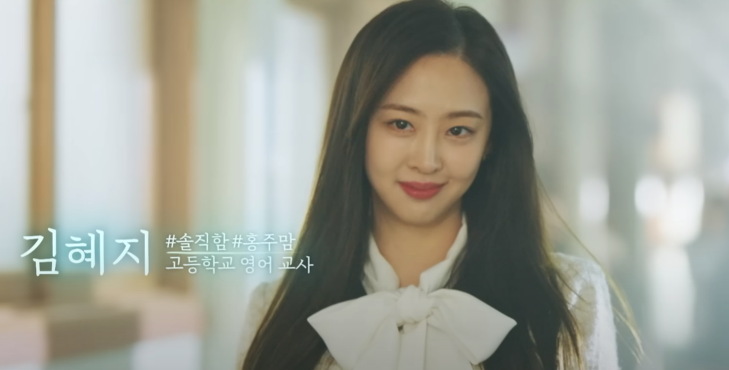오복고등학교 영어교사 혜지는 지금은 인기녀이지만 고등학교 당시에는 조용하고 수줍이 많은 편이었고 홍주에게 첫사랑은 후영이었고 홍주가 혜지의 편지를 전달해 주었죠. 혜지는 후영의 시선이 홍주에게 향하고 있음을 알게 된다고 합니다.