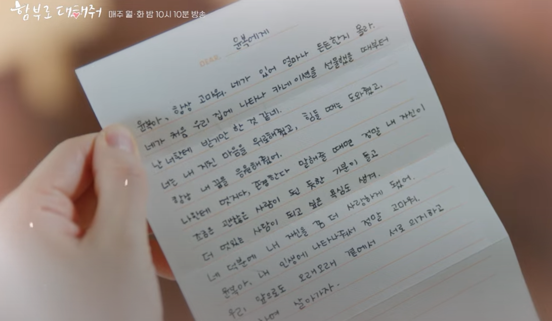 남동생이 쓴 편지를 넣어서 보냈죠 동행에게 뭐라고 섰냐고 물어보죠