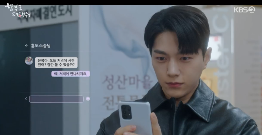 홍도는 윤복에게 저녁에 시간 있냐고 물어보는데 윤복은 바로 대답합니다.