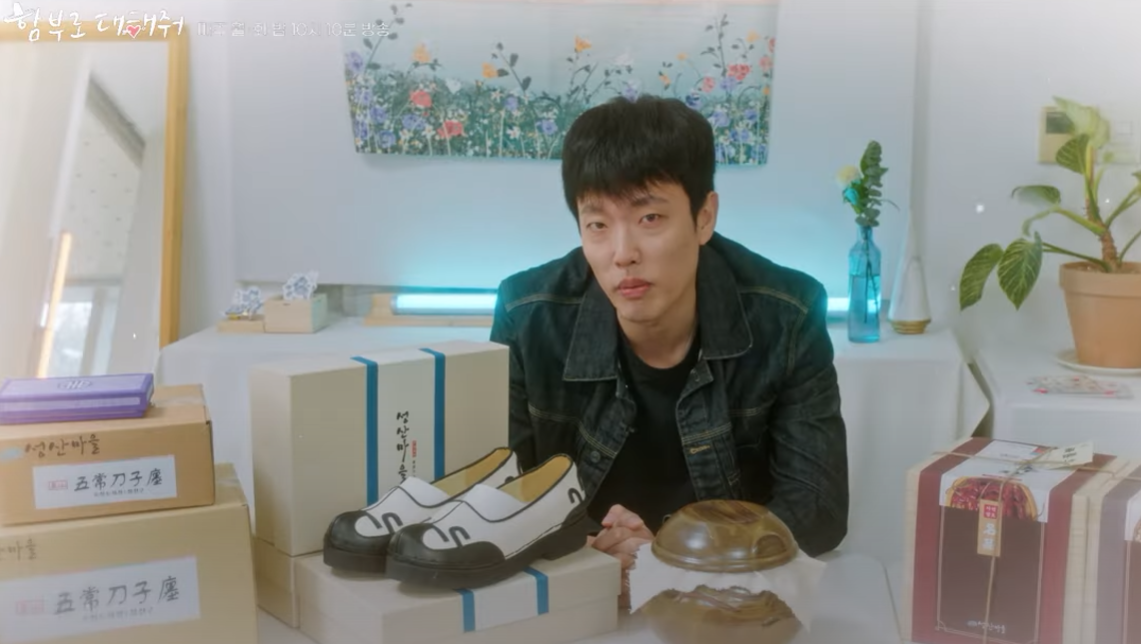 홍도에게 꽃길만 걸으시라고 힘내시라고 윤복은 신발을 선물해 줍니다.