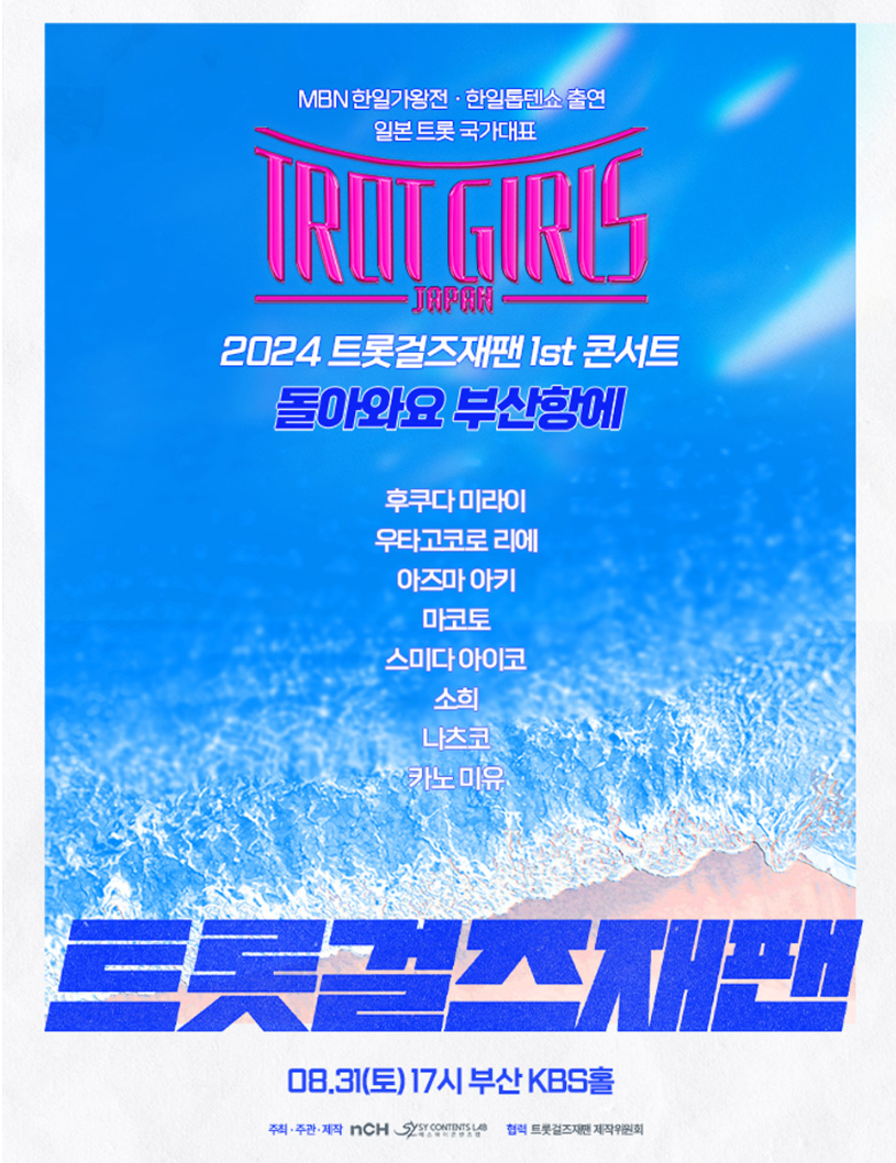 | 2024 트롯걸즈재팬 1st 부산공연 | 2024년 8월 31일 토요일 오후 5시 | 부산 kbs 홀 | 예매하기 |