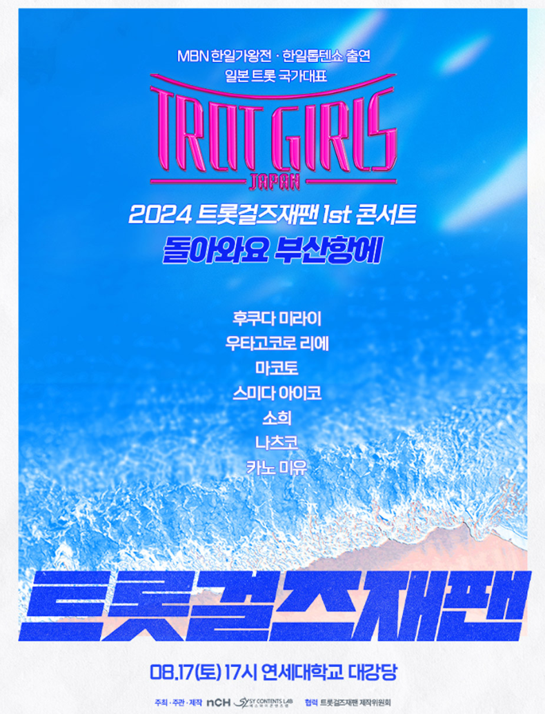 | 2024 트롯걸즈재팬 1st 서울공연 | 2024년 8월 17일 토요일 오후 5시 | 연세대학교 대강당 | 예매하기 |